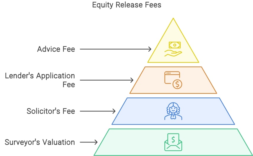 Equity release in the UK typically involves several costs including arrangement or application fees, valuation fees, solicitor's fees, and advisory fees.